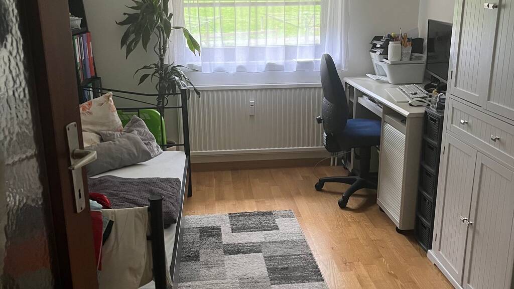 Flur Küche Wohnzimmer Schlafzimmer Abstellraum Büro (kann auch als Schlafzimmer genutzt werden) Bad und WC (befinden sich in getrennten Räume) Balkon