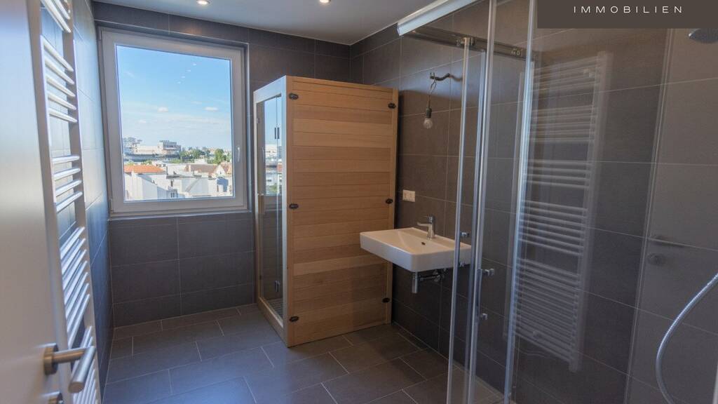 Diese 2021 modern sanierte 4-Zimmerwohnung erstreckt sich auf ca. 66 m² und befindet sich im 9. Liftstock eines gepflegten Wohnhauses. Dadurch ist sie sehr ruhig, hell und mit einem atemberaubenden Fernblick bis zum Kahlenberg.