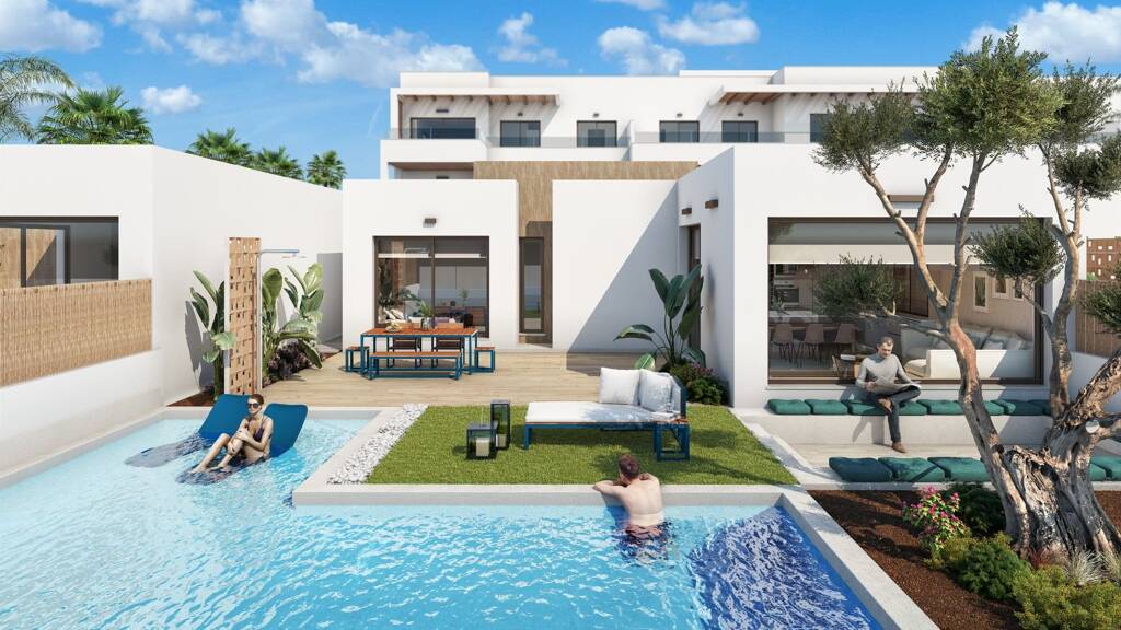 Die Immobilien vereinen modernes Design, Qualität und Funktionalität, und die unschlagbare Lage bietet einen fantastischen Blick auf den Golfplatz und das Meer des Mar Menor. Die Villen haben Grundstücksgrößen von 292m2 bis 400m2 mit viel Platz, um das Leben im Freien in Spanien zu genießen, einschließlich eines privaten Swimmingpools und Parkplatzes. Optional kann das Haus mit einem Untergeschoss und einer privaten Sonnenterrasse auf dem Dach ausgestattet werden.