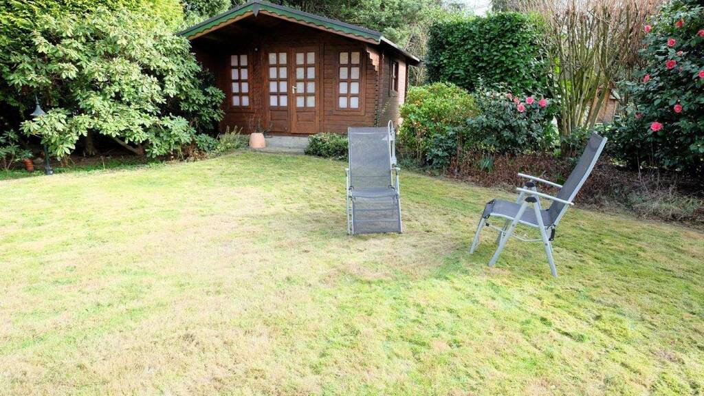 Der große Garten ist nicht einsehbar und bietet viel Privatsphäre. Die überdachte Terrasse (2020) lädt zum Entspannen und zu geselligen Stunden im Freien ein. Ein Gartenhaus und Gartenbeleuchtung gehören ebenfalls zur Ausstattung.