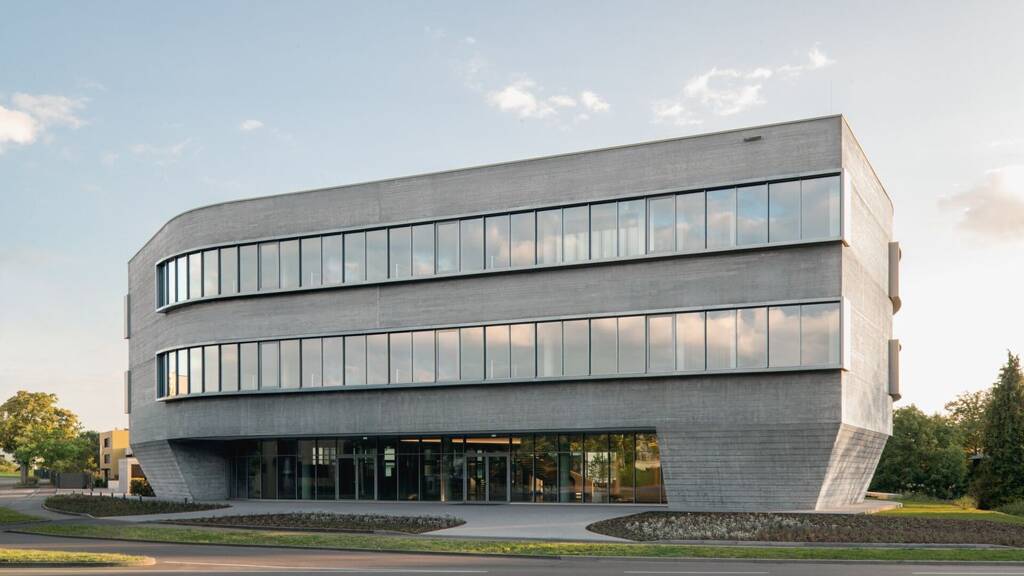 Der dreigeschossige Neubau wurde nach Plänen des renommierten Architekturbüros a+r Architekten realisiert und überzeugt durch seine unverwechselbare Formensprache. Der Baukörper in Form eines abgerundeten Dreiecks entfaltet eine skulpturale Präsenz mit hohem Wiedererkennungswert und verleiht dem Objekt eine außergewöhnliche Identität. Die Kombination aus architektonischer Klarheit, hochwertiger Materialität und funktionaler Nutzbarkeit schafft ein repräsentatives Umfeld für anspruchsvolle Unternehmensnutzungen.