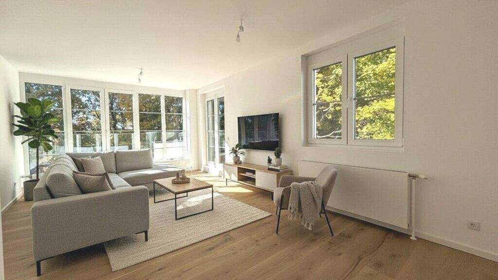 Bei den möblierten Fotos handelt es sich um virtuelles Homestaging, die Wohnung wird unmöbliert verkauft, sanitäre Anlagen bleiben im Objekt.