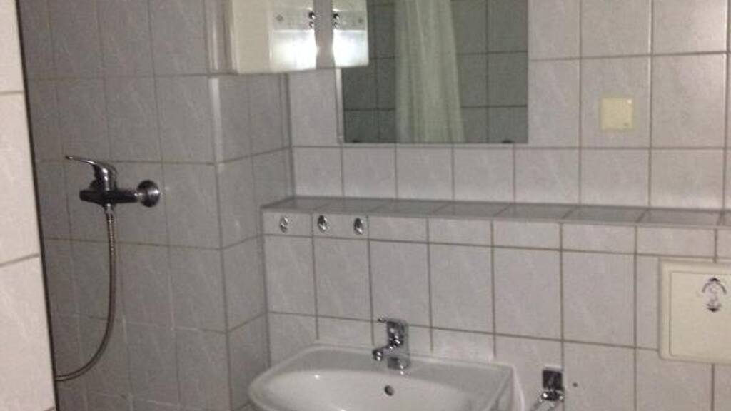 Die Wohnung verfügt über ein bis zur Decke gefliestes, eigenes Bad mit Dusche und WC. Im Bad sind bereits Handtuchhalter, WC-Papierhalter und ein Spiegel installiert. Die Warmwasseraufbereitung erfolgt durch einen Durchlauferhitzer.