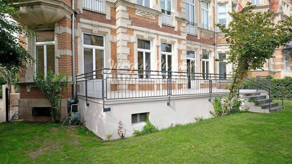 Exklusive Gewerbeeinheit mit Gartennutzung und eigener Terrasse im Erdgeschoss eines herrschaftlichen Anwesens aus dem 19. Jahrhundert - im Jahr 1995 aufwendig saniert. • Mietfläche ca. 228 m² • vielseitig nutzbar • geeignet als Praxis-, Kanzlei-, Büroräume • Grünläche ca. 150 m² inkl. Terrasse