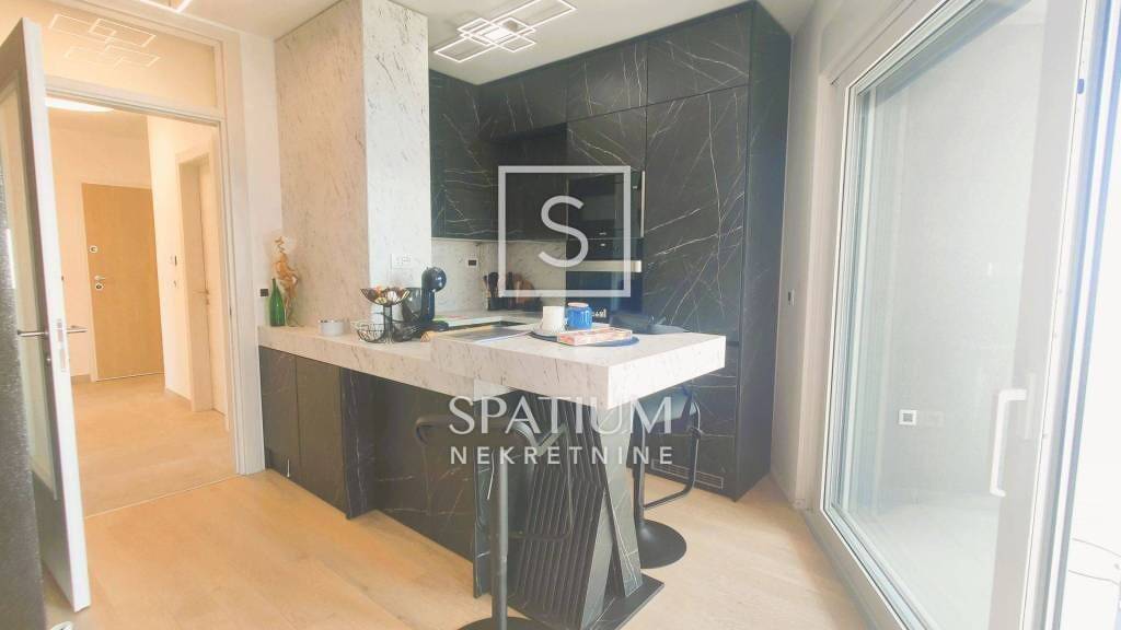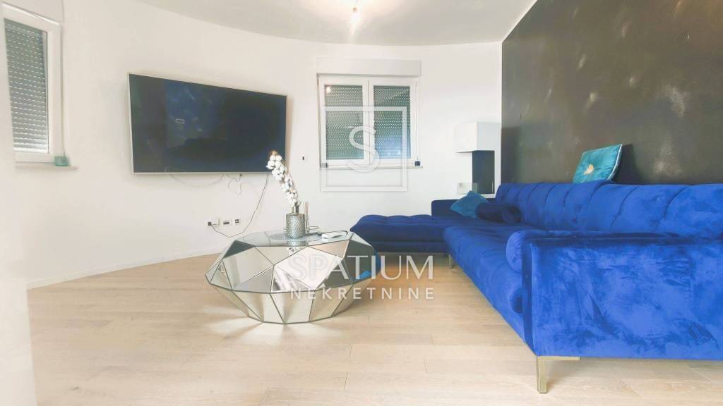 In Martinkovac bieten wir Ihnen eine sonnige Wohnung in einem Neubau mit Panoramablick. Die 71 m² große Wohnung besteht in ihrer aktuellen Aufteilung aus einem offenen Wohn-/Essbereich mit Küche, Schlafzimmer, Ankleidezimmer, Badezimmer und Flur. Vom Wohnzimmer aus gelangen Sie auf eine geräumige Loggia mit Blick auf die Kvarner Bucht und das Meer. Dank ihrer Ausrichtung ist die Wohnung den ganzen Tag über lichtdurchflutet. Zur Wohnung gehören außerdem ein 6 m² großer Abstellraum im Untergeschoss und zwei 25 m² große Stellplätze in der Tiefgarage. Eine Fußbodenheizung wird über den gemeinsamen Heizraum des Gebäudes betrieben, und für warme Tage ist eine Klimaanlage vorhanden. Die Wohnung wurde äußerst selten genutzt, daher ist sie komplett neuwertig und wird voll möbliert verkauft.