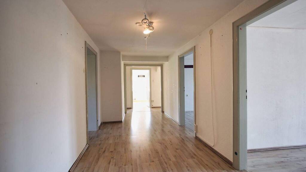 Im Obergeschoss befindet sich eine ca. 140qm große helle 5-Zimmer Wohnung, 2 großzügige Abstellräume und Sanitäranlagen für den angrenzenden Saal.