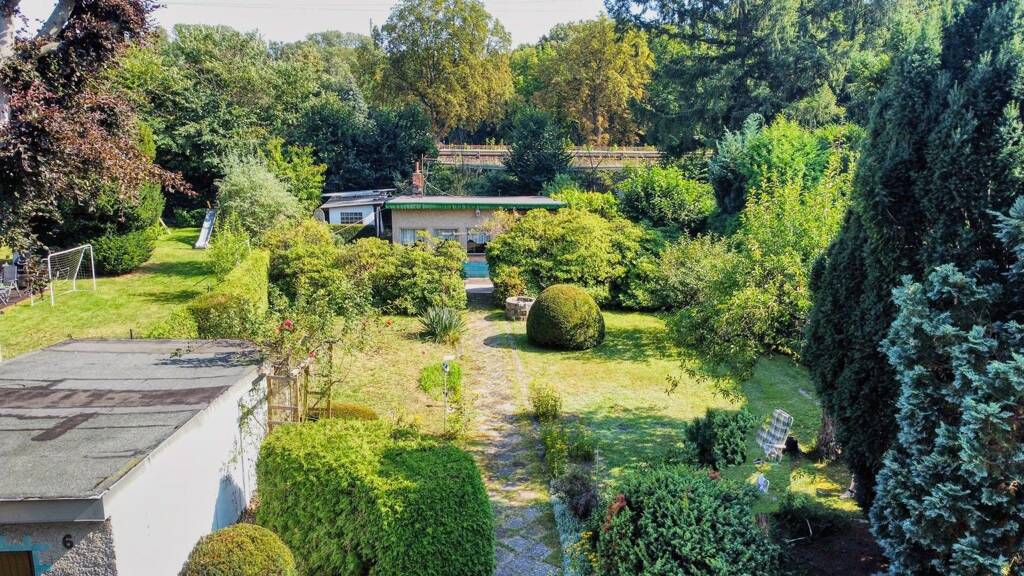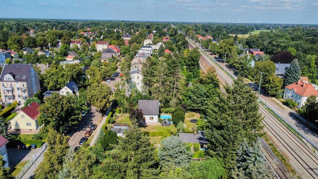 Bisher wurde das Grundstück viele Jahre als Gartengrundstück liebevoll gepflegt und für Familienzusammenkünfte genutzt. Als Altbestand auf dem Grundstück gibt es im hinteren Bereich eine ca. 40m2 große Laube mit 3 Zimmern, Bad mit Dusche und Küche und im vorderen Bereich eine einfache Garage. Alles ist voll funktionsfähig. Es gibt einen Wasser- und einen Elektroanschluß. Für die Übergangszeit gibt es einen kleinen Kaminofen.