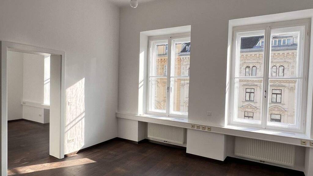 Dieses südseitige, sonnige Büro direkt am Graben liegt im 4. Liftstock mit grandiosem Ausblick. Es wurde bereits modern ausgestattet inkl. Klimatisierung und EDV-Verkabelung sowie dunklem Parkett. Der gut durchdachte Bürogrundriss mit 105 m² charakterisiert sich durch einen lichtdurchfluteten großen Empfangsbereich sowie durch 3 zusätzliche, unabhängig begehbare Büros sowie Teeküche, Duschbad und WC.