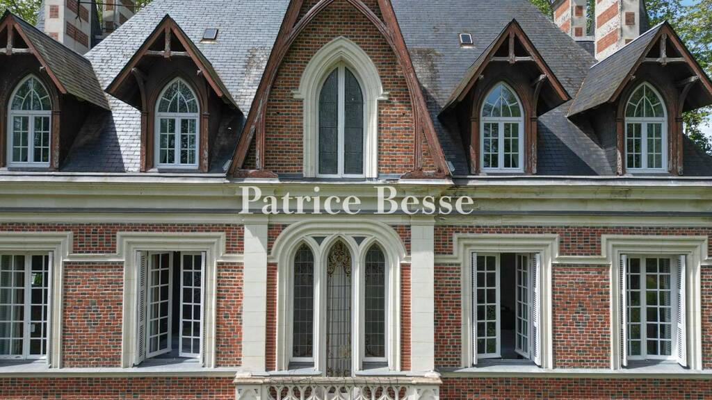 The manor houseThe manor house was built for a prominent Restoration dignitary, three years after the return of the exiled royalists. King Louis XVIII had just returned to Paris. The construction of the impressive country residence dates to that period. A considerable amount of work was carried out on the facade, a typical feature of many early 19th century mansions. Horizontal lines were beautifully combined with the vertical elevations. Subsequently, the triumphant eclecticism of the late 19th century gave free rein to the most fertile and daring imaginations. For example, the tuffeau and multicoloured brick façade is a copy of the Louis XII wing of the Château Royal in Blois. Combining flamboyant Gothic and Renaissance elements, the façade elegantly blends into the overall architectural landscape. The rational configuration is in keeping with the architectural trends that preceded the First World War. The front elevation of the residence has three storeys. A front flight of steps, rounded and larger at the base, leads to a platform and the double entrance door to the house. Framed by two white pilasters, the entrance is topped by a balcony with ogee-shaped openings. On both the ground and first floors, two small-paned windows frame the central section on either side, with the "chalk-white" window surrounds forming a striking contrast to the red brick colour. Vertical and horizontal band mouldings adorn the facade. The rear facade is rather plain, with four windows framing a door accessed via a stone perron. Further up, there is a large Renaissance-style opening similar to the balcony on the other side. The cellar features four basement windows on the south-west side and two on the north-east side. Two white stone towers proudly frame the facade, ending in two conical roofs topped by two chimneys on either side. The medieval-style, narrow, vertical openings are fitted with stained glass panes. They let soft light filter through, illuminating all the different spaces. On the third level, the slightly projecting roof has four gabled dormers and one larger central dormer window above the entrance door and the balcony. The central section has a slate roof with four pitches, as do the two towers.