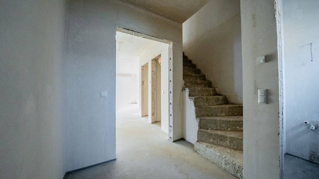 Die Immobilie wird im Innenausbauzustand übergeben. Bodenbeläge, Malerarbeiten, Sanitärausstattung, die Gestaltung der Außenanlagen sowie die Zufahrt und der Vorgarten können vom Käufer individuell umgesetzt werden. Strom-, Wasser- und Heizungsleitungen sowie eine Luftwärmepumpe sind bereits installiert.