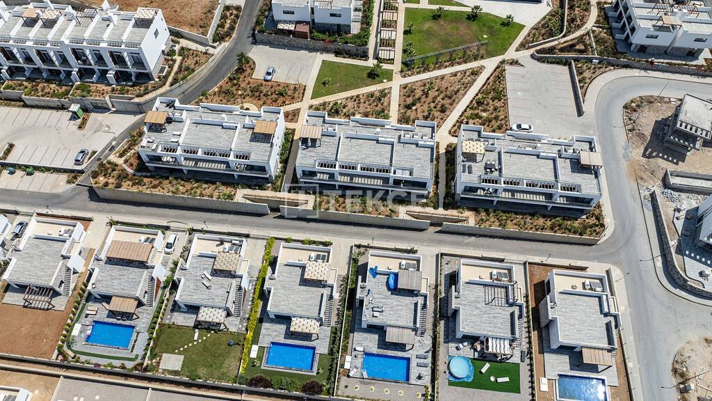 Die Villen, die mit erstklassiger Handwerkskunst gebaut wurden, haben eine 4+1-Zimmer-Einteilung. Das Innendesign der Duplex-Villen mit privatem Pool und Garten ist mit modernen Details ausgestattet. Im Erdgeschoss der Villen befinden sich eine offene Küche, ein Wohnzimmer und ein Schlafzimmer. Im zweiten Stock befinden sich ein Hauptschlafzimmer mit eigenem Bad und drei weitere Schlafzimmer. Zur Innenausstattung der Villen gehören feuchtigkeitsresistente Bodenbeläge, eine klima- und wasserisolierende Dachbeschichtung, rutschfeste Fliesen im Innen- und Außenbereich, eine Fertigküche mit Einbaugeräten, doppelt verglaste Fenster und eine Eingangstür aus Holz. Die Duplex-Villen mit einer Größe von 280 m² bieten darüber hinaus raumhohe Einbauschränke, Toiletteneinheiten, rutschfeste Keramikwaschbecken und keramische Wandfliesen in den Schlafzimmern.