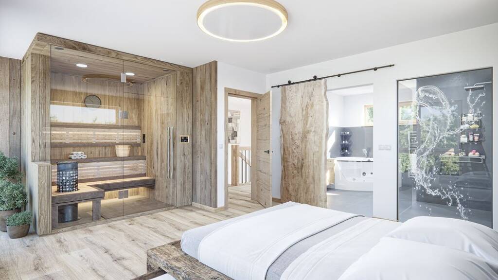 Dieses moderne und ausdrucksstarke Haus befindet sich im absoluten Einklang mit der Natur. Die schnörkellose Architektur in Verbindung mit einer hochwertigen Holzfassade und den begrünten Vorbauelementen lassen dieses Haus mit der Landschaft eins werden. Schon auf den ersten Blick findet man hier Ruhe und Entspannung. Den Alltag hinter sich lassen und eintauchen in eine auf Wellness ausgerichtete Wohnlandschaft. Die im Schlafzimmer integrierte Sauna bietet wohlige Wärme mit einem grandiosen Ausblick auf die Natur. Die implizierten Holzelemente in Wohn- und Schlafbereich verleihen Linz seinen ganz besonderen Wohlfühlcharakter.