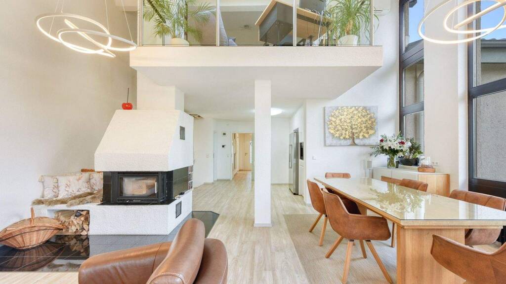 Das Haus ist ausgestattet mit Vollwärmeschutz, Wärmepumpe von 2012, offenem Holzkamin, ursprünglichen Holzfenstern sowie Kunststofffenstern von 2023 mit teilweise elektrischen Rollläden und zwei Klimageräten von 2017.