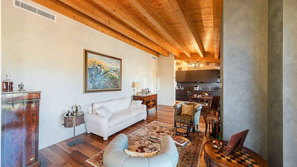 Der Wohnbereich erstreckt sich auf natürliche Weise nach außen, dank der großen, teilweise überdachten Terrasse, die zu einer echten Erweiterung des Wohnbereichs wird. Ein exklusiver Raum, in dem man Momente der Entspannung oder der Geselligkeit genießen kann, umrahmt von einem unvergleichlichen Blick auf den See und die stimmungsvollen Sonnenuntergänge am Gardasee.