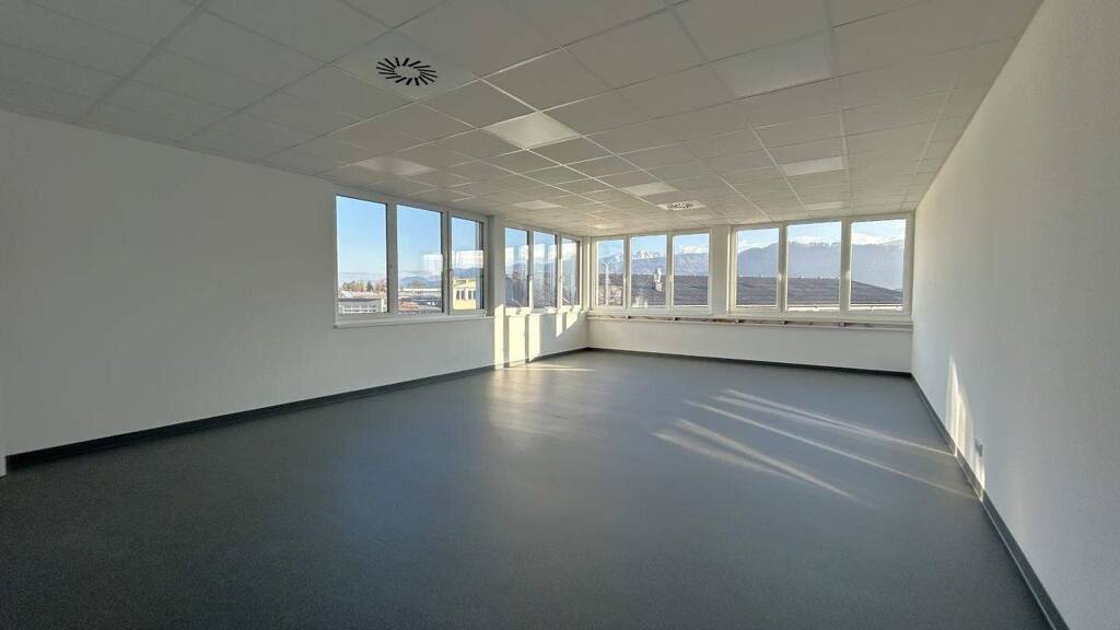 In Klagenfurt steht diese moderne und neuwertige Bürofläche mit insgesamt 269 m² zur Vermietung. Das Gebäude wurde erst im Jahr 2025 fertiggestellt und bietet damit höchste Bauqualität sowie eine zeitgemäße technische Ausstattung. Die Fläche befindet sich im 1. Obergeschoss und überzeugt durch eine klare, großzügige Raumstruktur: Vier große, helle Büroräume bilden das Herzstück und schaffen ein angenehmes Arbeitsumfeld für Teams oder Unternehmen mit Bedarf an weitläufigen Arbeitsbereichen. In der Mitte der Einheit befindet sich eine moderne Gemeinschaftsküche, die als zentraler Treffpunkt für Mitarbeiter dient, sowie ein Technik- bzw. Abstellraum. Getrennte, moderne Sanitäranlagen für Damen und Herren sind ebenfalls vorhanden.