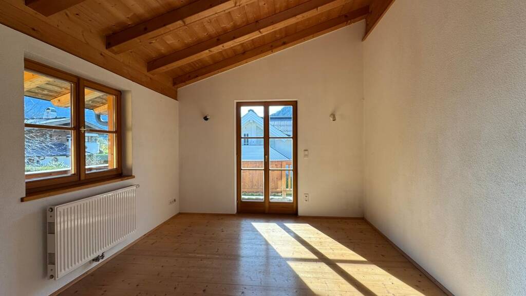 Im Obergeschoss erwarten Sie helle Schlafzimmer mit Balkonzugang und traumhaftem Ausblick auf die Kitzbüheler Alpen. Die sichtbare Holzkonstruktion und die offenen Decken schaffen eine warme, wohnliche Atmosphäre.