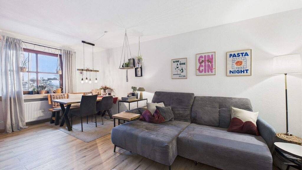 Diese vollständig renovierte 3-Zimmer-Wohnung im 2. Obergeschoss eines gepflegten Mehrfamilienhauses aus dem Jahr 1984 wurde im Jahr 2020 umfassend modernisiert. Im Zuge der Renovierung wurden Böden, Badezimmer und Küche erneuert, sodass sich die Immobilie heute in einem sehr gepflegten und bezugsfertigen Zustand präsentiert. Die Wohnfläche beträgt ca. 74 m². Der Eingangsbereich erschließt alle Räume zentral und sorgt für eine klare sowie praktische Grundrissgestaltung. Das Wohnzimmer bietet ausreichend Platz für eine Sofalandschaft sowie einen Essbereich und bildet den Mittelpunkt der Wohnung. Doppelt verglaste Holzfenster im Wohnbereich und in der Küche verleihen den Räumen eine angenehme Ausstrahlung. Vom Wohnzimmer aus gelangen Sie auf den Balkon, der zusätzlichen Freiraum schafft und Platz für eine Sitzgelegenheit bietet. Die separate Küche wurde im Jahr 2020 neu eingebaut und präsentiert sich modern mit weißen Fronten sowie Arbeitsflächen in Holzoptik. Sie überzeugt durch funktionale Stauraumlösungen und eine zeitgemäße Ausstattung. Das Schlafzimmer bietet ausreichend Stellfläche für ein Doppelbett und einen Kleiderschrank. Ein weiteres Zimmer eignet sich flexibel als Büro oder Kinderzimmer. In beiden Räumen sind Schallschutzfenster verbaut, die für ein ruhiges Wohnklima sorgen. Das ebenfalls im Jahr 2020 modernisierte Badezimmer ist zeitlos gestaltet und funktional ausgestattet. Ein Waschmaschinenanschluss ist dort integriert. Ein Duplex-Garagenstellplatz in der hauseigenen Tiefgarage ist zusätzlich zum Kaufpreis für 15.000 € zu erwerben. Die Wohnung eignet sich sowohl zur Eigennutzung als auch als Kapitalanlage und überzeugt durch ihren renovierten Zustand sowie die durchdachte Raumaufteilung.