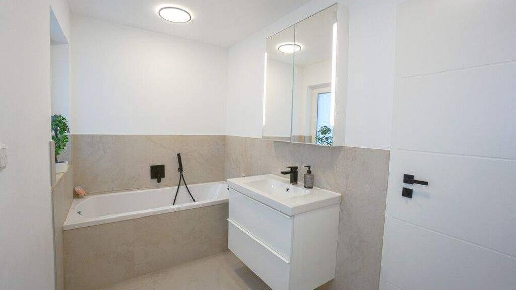 Der Keller bietet neben dem Heizungsraum zusätzliche Nutz- und Abstellflächen sowie einen separaten Waschraum. Im Rahmen der Sanierung wurden unter anderem dreifach verglaste Kunststofffenster, sämtliche Bäder, Boden-, Wand- und Deckenbeläge, Innentüren, Leitungen, Heizkörper sowie der Warmwasserspeicher erneuert. Eine moderne Einbauküche inklusive Elektrogeräten ist bereits im Kaufpreis enthalten.