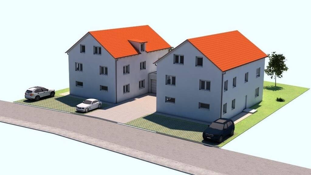 Erstellt werden zwei Baukörper mit jeweils 3 Wohneinheiten, voll unterkellert mit 2 PKW-Außenstellplätzen (je 7.500 €).