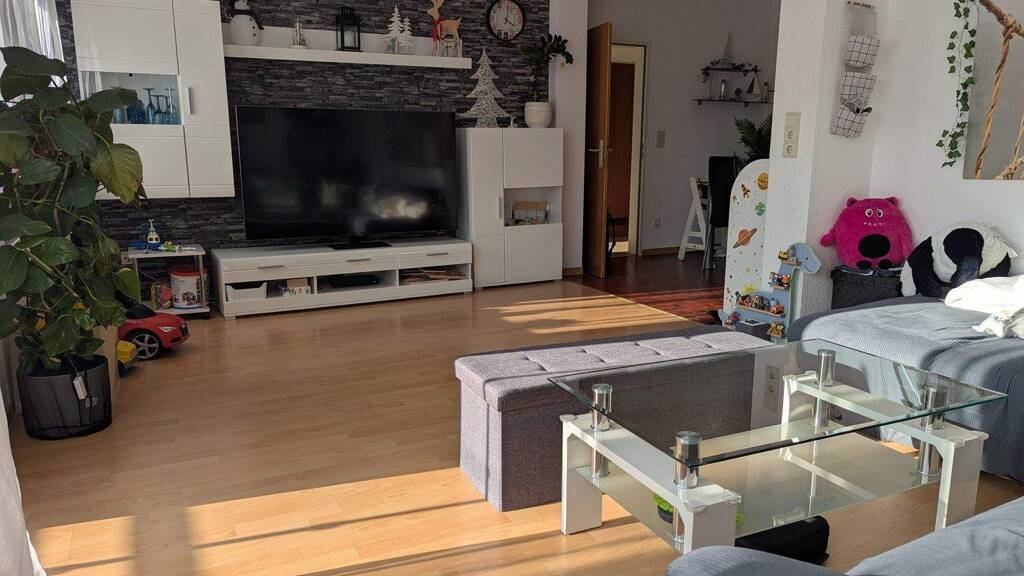 Im Obergeschoss des Dreifamilienhauses befindet sich die 4-Zimmer-Wohnung mit knapp 102,5 qm Wohnfläche. Der tolle Schnitt der Wohnung ermöglicht eine Trennung zwischen Schlafzimmern und Wohnbereich. Das Wohnzimmer mit angrenzendem Essbereich bietet viel Platz und wirkt durch die großzügigen Fenster und den angrenzenden Balkon sehr freundlich und hell. In der Hofeinfahrt befindet sich eine direkte Parkmöglichkeit für die Wohnung.