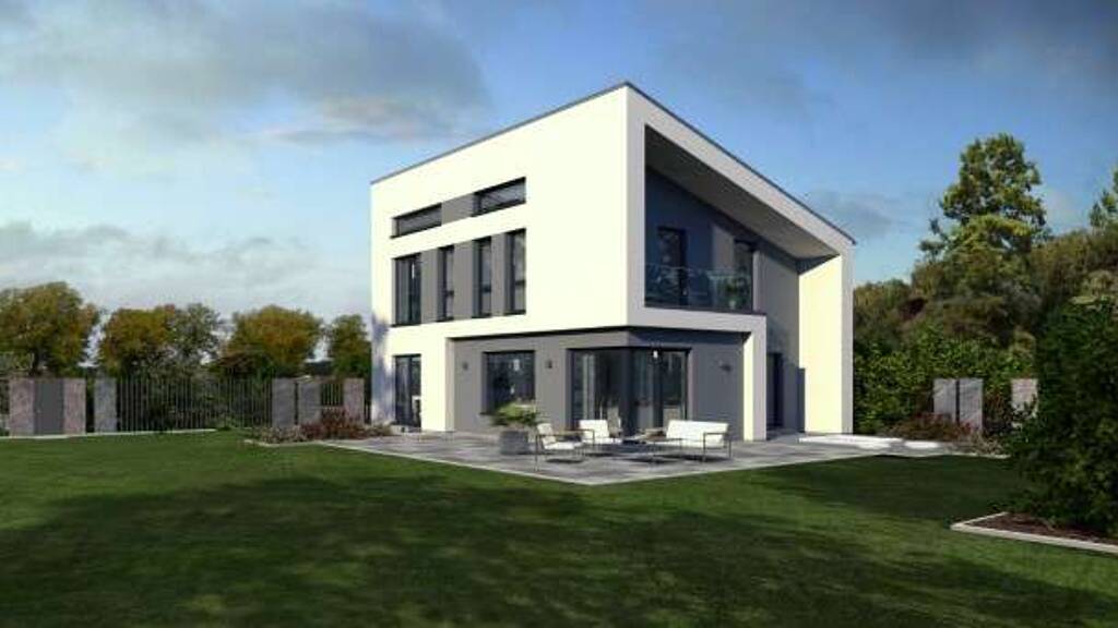 Mondän und urban präsentiert sich das 2-geschossige Pultdachhaus.
