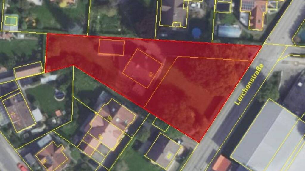 Das Angebot besteht aus einem Anwesen aus zwei Flurstücken. Das hintere Grundstück mit ca. 1033 m² (mit Zufahrt nach hinten) und das vordere Grunstück an der Lerchenstraße mit ca. 766 m².