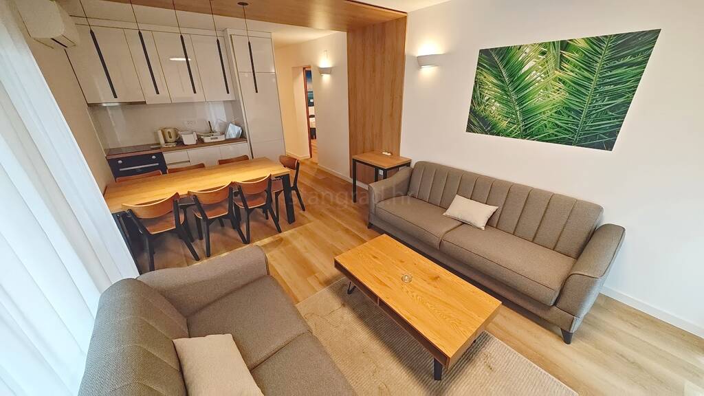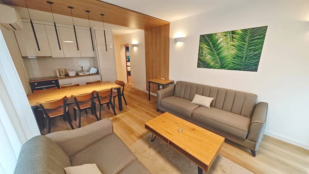 Die Wohnung ist eine geräumige, ebenerdige Einheit. Sie befindet sich in einem modernen Gebäude im ersten Stock und hat eine Gesamtfläche von 110 m². Zu der Fläche gehören ein Eingangsbereich, ein Wohnzimmer mit Küche und Essbereich, vier Schlafzimmer, drei Badezimmer, eine große überdachte Terrasse sowie ein Abstellraum im Keller. Die Wohnung ist vollständig mit modernen Möbeln ausgestattet und verfügt über hochwertige, zeitgemäße technische Einrichtungen. Zur Immobilie gehört zudem ein kleiner, gepflegter Innenhof von 16 m². Dem neuen Eigentümer steht zwei Parkplatz zur Verfügung.