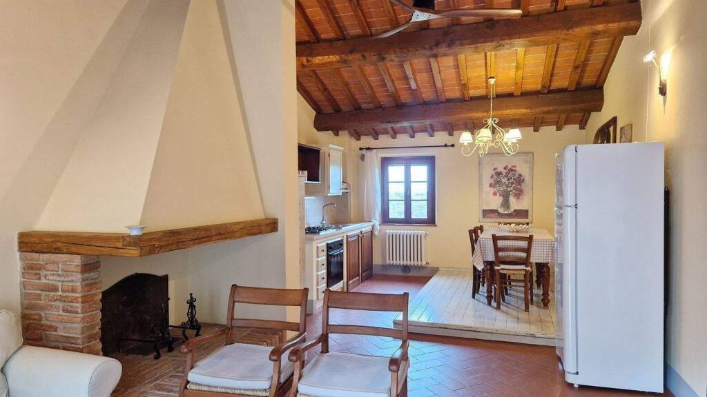 Das Obergeschoss besteht aus: einem großen Wohnbereich mit Kamin und Küchen-/Essbereich, 4 Schlafzimmern und 3 Badezimmern, mit Decken aus Kastanienholzbalken und -sparren und toskanischen Ziegeln sowie Terrakottaböden. Das Obergeschoss wird an Touristen durchschnittlich etwa 15 Wochen von Mai bis September über eine sehr gute einheimische Agentur vermietet. Das kann ausgebaut werden.
