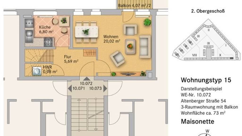 Maisonette zur Miete737 €3,5 Zimmer • 73,7 m² • 2. Geschoss