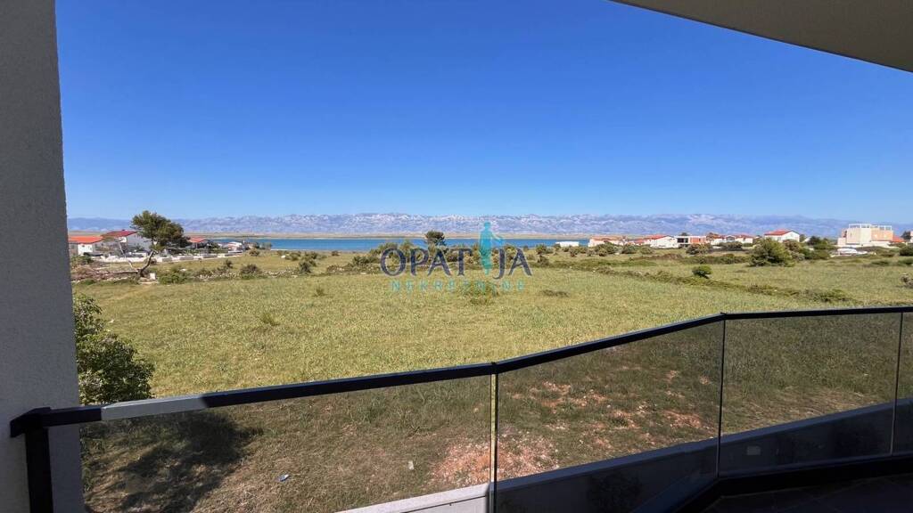 Vir, neu gebaute Wohnung im ersten Stock eines kleineren Wohngebäudes mit Meerblick. Sie besteht aus zwei Schlafzimmern, einem Wohnzimmer mit offener Küche, einem Badezimmer und zwei überdachten Terrassen, von denen eine Meerblick bietet. Zur Wohnung gehört ein Parkplatz. Das Gebäude ist an die städtische Wasser- und Abwasserversorgung angeschlossen. Es wurde hochwertig und nach den neuesten Standards gebaut. Die Bruttonutzfläche beträgt 90 Quadratmeter. Die Wohnung ist sofort bezugsfertig, alle Unterlagen sind in Ordnung.