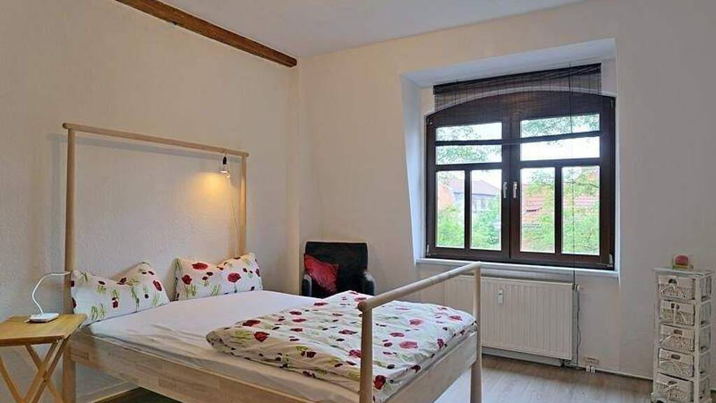 ### Please note the availability date! Bitte das Verfügbarkeitsdatum beachten! ### neu renovierte Mansardenwohnung (3.OG) in der Innenstadt; (Wichtig: zum Fototermin 6/2020 war die Möblierung noch nicht vollständig vorhanden!); WLAN inklusive; helles Wohnzimmer mit Couch, Sideboard und TV; Schlafzimmer mit 1,40m-Bett und Regalen; separate Küche mit kleinem Esstisch; Bad mit Wanne und Waschtisch; Waschmaschine zur Mitnutzung vorhanden; separates WC im Bad; Wohnungsflur mit Garderobe; Wäschewechsel auf Wunsch möglich; Reinigung nach Absprache gegen Aufpreis möglich; Pauschalmiete 695,00 Euro (bei 1 Person); Vermietung an max. 2 Personen; Kaution 1.000,00 Euro; monatlicher Heizkostenzuschlag 40,00 Euro von Oktober bis einschließlich April; PKW-Stellplatz nach Absprache gegen Aufpreis möglich; Endreinigung Mietersache; Mindestmietdauer 3 Monate; Pflichtangaben zum Energieausweis: Energieausweis gültig bis: 15.01.2036; Baujahr Gebäude: 1913; Energieausweis: nach Verbrauch; Energieverbrauch: 66.7 kWh/(m²a); Energieeffizienzklasse: B; Primärer Energieträger: Erdgas H