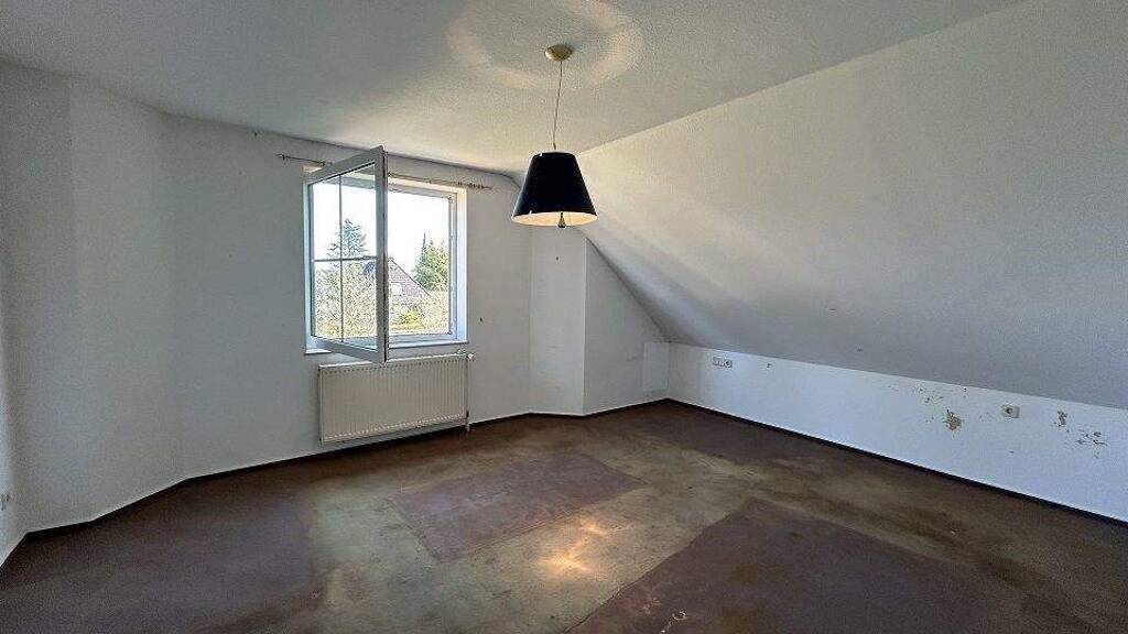 Auf ca. 128 m² Wohnfläche stehen Ihnen insgesamt 4 Zimmer zur Verfügung, darunter 3 gut nutzbare Schlafzimmer. Ein funktionelles Badezimmer und ein Gäste-WC ergänzen das Raumangebot sinnvoll. Die Ausstattung umfasst u. a. Fliesen und Teppichboden (beides erneuerungsbedürftig) und eine vorhandene Miele Einbauküche im Obergeschoss ermöglicht einen praktischen Start und kann je nach Anspruch modernisiert, neu konzipiert oder in das Erdgeschoss verlegt werden, da die Anschlüsse in einem Raum im Erdgeschoss vorhanden sind. Auch die Wände sollten neu tapeziert werden, da im Haus Hunde gelebt haben. Insgesamt entspricht die Ausstattung dem Baujahr der Immobilie. Die Gasheizung muss aufgrund des Alters erneuert werden.