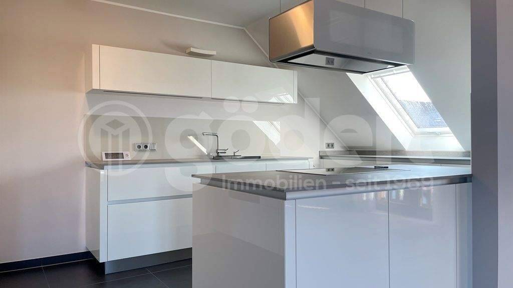 Aufteilung: Erste Wohnebene: Diele, herrlicher Wohn- und Essbereich mit offener Küche, Schlafzimmer, Kinder-/Arbeitszimmer, Badezimmer, separates WC, 2 Balkone, Wendeltreppe Zweite Wohnebene im Spitzboden: Ein weiteres, großes Zimmer mit Ausblick ins Grüne, begehbarer Stauraum und ein zweites Bad.