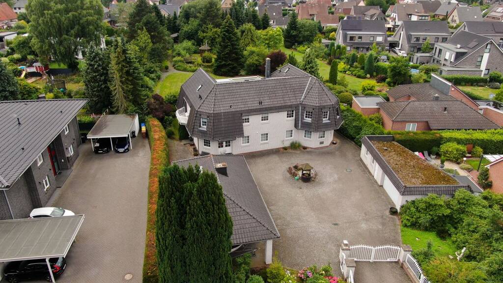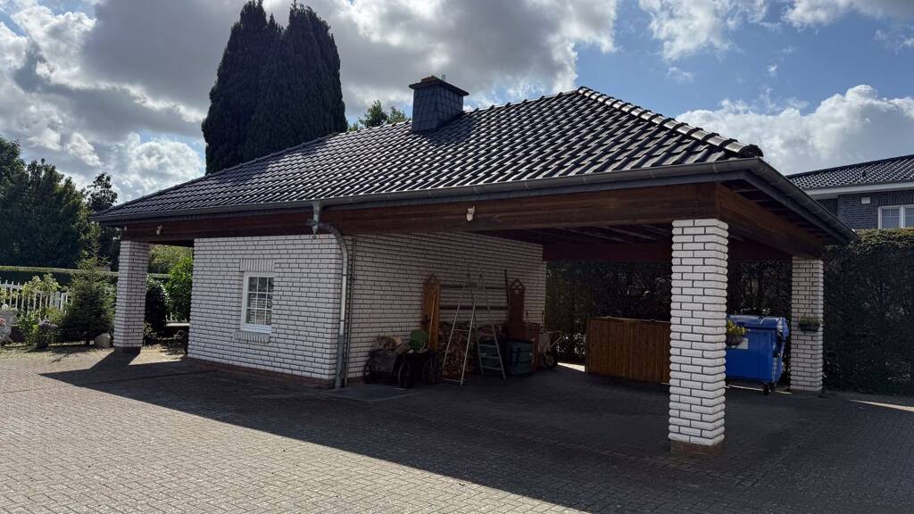 Die 1995 erbaute Erdgeschosswohnung in einem schönen Dreifamilienhaus in der Lange Reihe 11 a überzeugt schon beim ersten Eindruck durch seine solide Bauweise, die gepflegte Gesamterscheinung und die ruhige, ansprechende Wohnlage. Die helle Fassade wirkt freundlich und einladend, während das elektrische Zufahrtstor für Sicherheit und Privatsphäre sorgt. Insgesamt umfasst das Gebäude nur drei Wohneinheiten, was für eine angenehme, familiäre Hausgemeinschaft steht. Die einzelnen Wohnungszugänge sind geschickt voneinander getrennt angeordnet, sodass ein hohes Maß an Privatsphäre gewährleistet ist. Der großzügige Hofbereich bietet nicht nur ein gepflegtes Ambiente, sondern auch zwei zu dieser Wohnung gehörende Carports sowie einen privaten Schuppen - ideal für Fahrräder, Gartengeräte oder saisonal genutzte Utensilien.