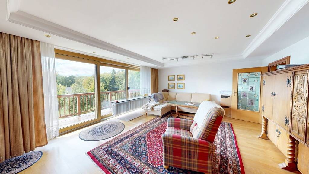 Das Wohnhaus (Baujahr 1969) bietet auf ca. 391,5 m² Wohnfläche Platz für Mehrgenerationenwohnen oder eine Kombination aus Wohnen und Arbeiten. Es erstreckt sich über Erd-, Ober- und Dachgeschoss und ist vollständig unterkellert. Eine Doppelgarage sowie Außenstellplätze ergänzen das Wohngebäude.