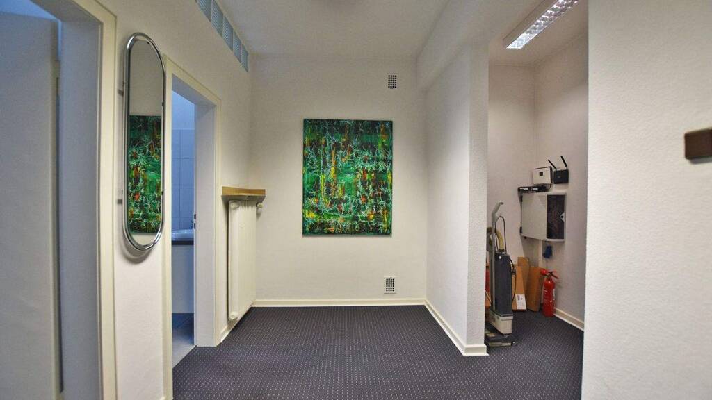 Derzeit ist das Erdgeschoss des Gebäudes in ein Büro am zentralen Empfang und drei weitere Büro-/Besprechungsräume sowie eine Küche aufgeteilt. Über die mittig liegende Treppenanlage wird das Obergeschoss erreicht. Hier gehen zu beiden Seiten Flure ab, die zu insgesamt fünf ebenfalls lichtdurchfluteten Büroräumlichkeiten, einem Besprechungs-, einem Serverraum, zu einer weiteren vollausgestatteten Küche und zu zwei sanitären Anlagen führen.