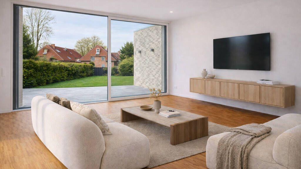 Die Doppelhäuser überzeugen durch eine durchdachte und funktionale Wohnraumaufteilung sowie ein modernes architektonisches Gesamtkonzept. Das Erdgeschoss präsentiert sich offen und lichtdurchflutet. Großzügige Glas-Schiebeelemente schaffen eine harmonische Verbindung zwischen Innen- und Außenbereich und ermöglichen ein besonders angenehmes Wohngefühl mit fließenden Übergängen zur Terrasse.