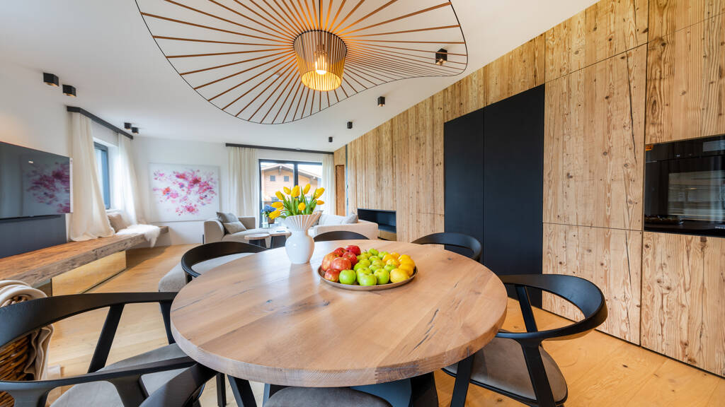 In ruhiger, aber dennoch in zentraler Lage befindet sich diese erst kürzlich fertiggestellte Wohnanlage. Hier gelangt im ersten Obergeschoss diese hochwertige komplett möblierte Wohnung zum Verkauf. Die Einheit wird über das gemeinsame Treppenhaus oder den Personenlift erreicht. Hier unterteilt sich der perfekt geschnittene Grundriss in zwei Schlafzimmer mit jeweils zwei Badezimmer, ein großzügiger Garderobenbereich, ein separates WC, ein Abstellraum mit Waschmaschinenanschluss, sowie in den hellen offenen Wohn- Essbereich. Die Einrichtung ist im Preis enthalten und wurde durch einen renommierten Innenarchitekten geplant und durch seine Professionisten umgesetzt. Die Balkon- und Terrassenbereiche mit Blick auf den Wilden Kaiser laden zum Entspannen und zum Energietanken ein. Weiters verfügt die Wohnung über ein großes Kellerabteil, Stellplätze in der Tiefgarage können für € 35.000 dazu erworben werden.