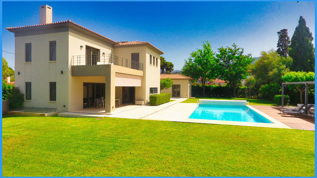 Auf einem perfekt angelegten Grundstück mit absoluter Privatsphäre gelegen, ist die Villa um einen modernen, mit weißen Mosaikfliesen verzierten Pool herum angelegt.