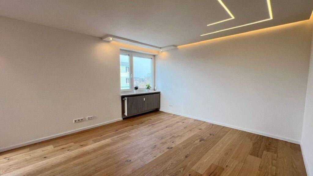 Kaufen - Einziehen - Wohlfühlen! Diese stylische Wohnung im obersten Geschoss eines gepflegten Mehrparteienhauses mit Lift wurde gerade generalsaniert: alle Installationen erneuert, Eichenparkettboden bzw. großformatige Fliesen verlegt, weiße Türen, Neugestaltung des Grundrisses... Damit erstrahlt die Wohnung in modernem Design mit indirekter Beleuchtung und offenem Charakter bei gleichzeitig gemütlicher Kompaktheit. Den sonnigen Westbalkon können Sie sowohl von der Küche, als auch vom Wohnzimmer aus betreten und den Blick ins Grüne schweifen lassen. Insgesamt erwarten Sie 48 Quadratmeter modernster Wohnkomfort. Ein Highlight ist das großzügige Wohlfühlbad mit Badewanne, Regenschauerdusche, viele Aufbewahrungsmöglichkeiten und einem Waschmaschinenanschluss. Auf Wunsch wird eine Küche eingebaut. In 2025 wurde das Dach des Hauses erneuert und gedämmt. Die Kosten hierfür sind bezahlt! Stauraum bietet ein Kellerabteil. Ein Stellplatz kann bei der Hausverwaltung angemietet werden.