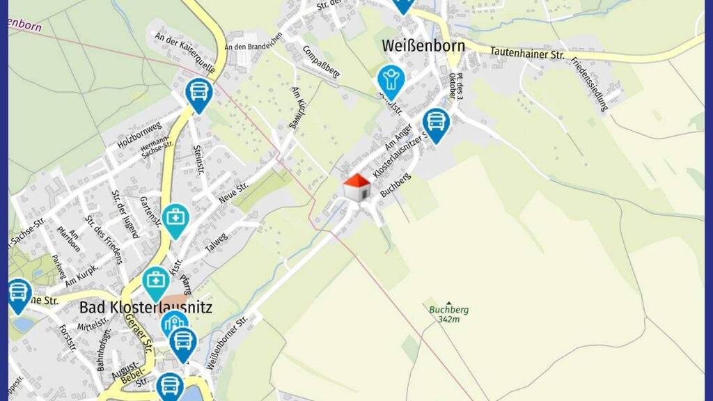 Weißenborn liegt landschaftlich wunderschön gelegen am Eingang des Eisenberger Mühltals. Durch die verkehrsgünstige Lage, Nähe Knotenpunkt Autobahn 4 und 9, sowie Bahnanschluss in Hermsdorf finden Sie eine gute Kombination aus guter Infrastruktur und einer ruhigen ländlichen Lage. Der Ort selbst verfügt über Schule, Kindergarten, Arztpraxis, Bäcker und Fleischer, sodass die wichtigsten Dinge direkt im Ort zu finden sind. Das optimale Umfeld, für denjenigen der sich nochmal selbst verwirklichen möchte. Weißenborn ist eine Gemeinde mit ca. 1260 Einwohnern im Osten des thüringischen Saale Holzland Kreises und Teil der Gemeinde Bad Klosterlausnitz. Weißenborn liegt nordöstlich des Hermsdorfer Kreuzes, an dem sich die Autobahnen 4 und 9 schneiden. Das Hermsdorfer Kreuz ist einer der größten und wichtigsten Verkehrsknotenpunkte Deutschlands. Unweit des Hermsdorfer Kreuzes liegt die Stadt Hermsdorf, die an Bad Klosterlausnitz angrenzt. Ein Nachbarort der Kurgemeinde ist Weißenborn. Von Weißenborn gelangt man in nördliche Richtung in das bekannte Eisenberger Mühltal mit seinen vielen Wandermöglichkeiten und Sehenswürdigkeiten. Die nächstgelegene Stadt ist Bad Klosterlausnitz in ca. 1 km Entfernung.