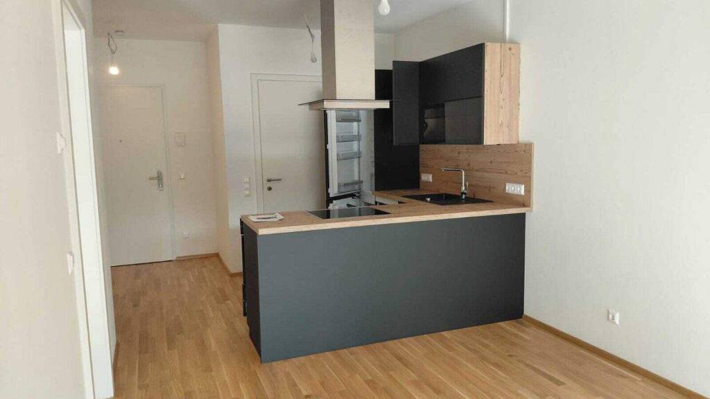 Der zentrale Ort ist der offene Wohn-Ess- Küchenbereich mit einer modernen Einbauküche, das Schlafzimmer ist direkt angeschlossen und von beiden Räumen ist auch der Garten und die Terrasse erreichbar. Das Badezimmer verfügt über eine Dusche und WC sowie Handtuchtrockner und Waschmaschinenanschluss.