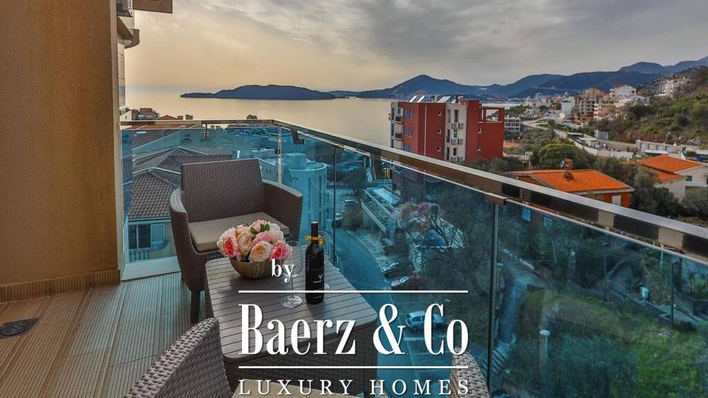 this apartment is located in przno, municipality of budva. tivat airport is 51km away and podgorica airport is 60km away from the apartment. the apartment has a seaview and the view of the mountains around it. the apartment is on the 5th floor and is fully furnished. the building has an open pool that is ready for usage.