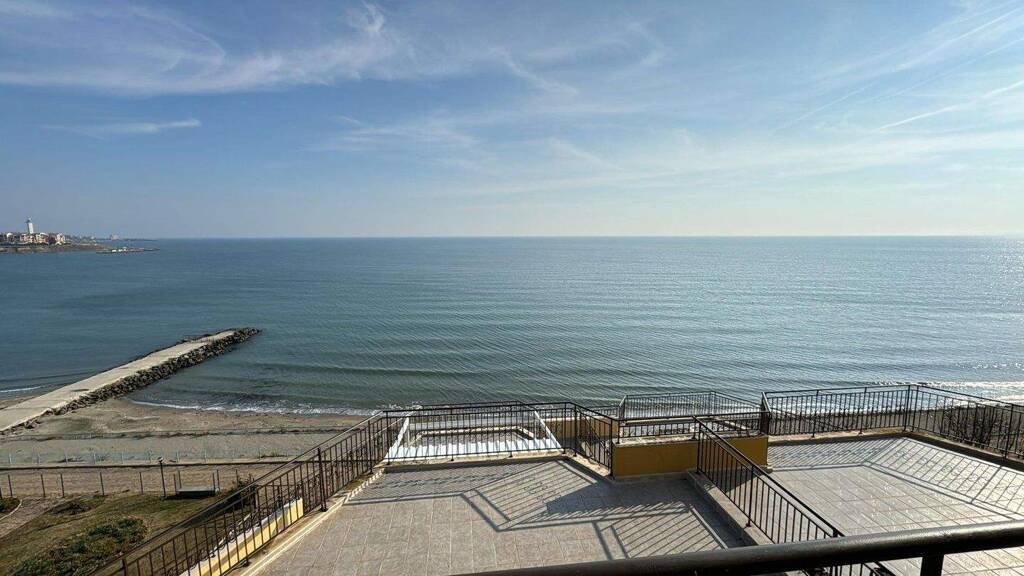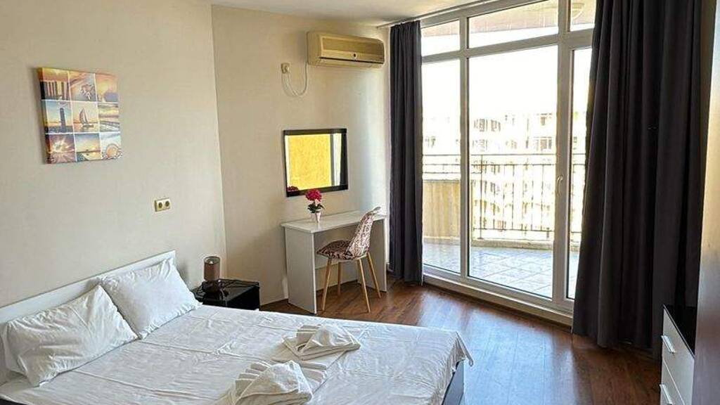 Wir bieten Ihnen eine 3 Zimmer Wohnung mit einer Fläche von 155 qm in der 5. Etage mit Fahrstuhl im Midia Resort in Aheloy Bulgarien. Die Wohnung verfügt über einen Eingangsbereich, einem geräumigen Wohnzimmer, integrierter Küche, zwei hellen lichtdurchfluteten Schlafzimmer, Bad mit Dusche und einer Terrasse mit frontalem Blick auf das Meer.