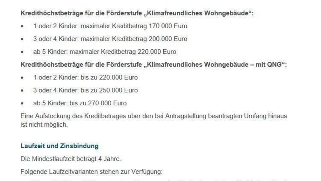 Sie haben die Möglichkeit bei einem KFW Klimafreundlicher Neubau einen Kredit-betrag von 100.000 Euro zu einem günstigeren Zinssatz je Wohnung zu erhalten.