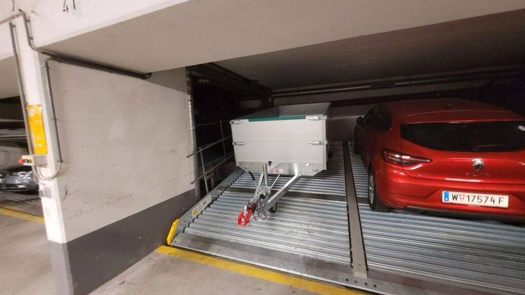 Max. Abmessungen Auto: .Länge: 5 m .Höhe: 1,50 m Es sind obere & untere Stapelparkplätze verfügbar. Insgesamt gelangen 4 Parkplätze zur Vermietung. .Für die oberen beträgt die Miete € 95,- .Für die unteren beträgt die Miete € 90,-