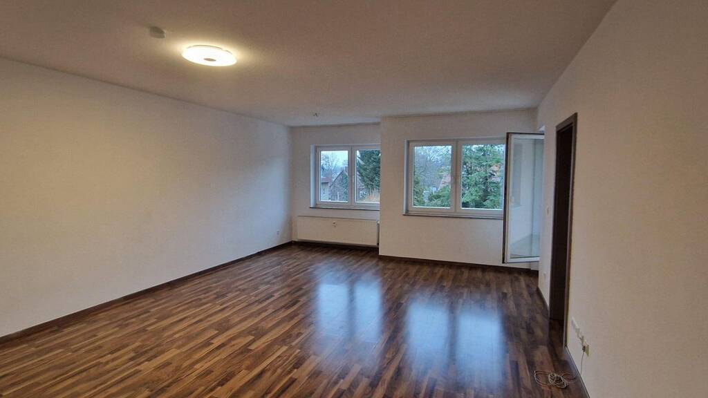 Raumaufteilung: Die drei Zimmer lassen sich flexibel als Wohnzimmer, Schlafzimmer und Home-Office oder Kinderzimmer nutzen. Große Fenster sorgen in der gesamten Wohnung für eine freundliche, helle Atmosphäre.