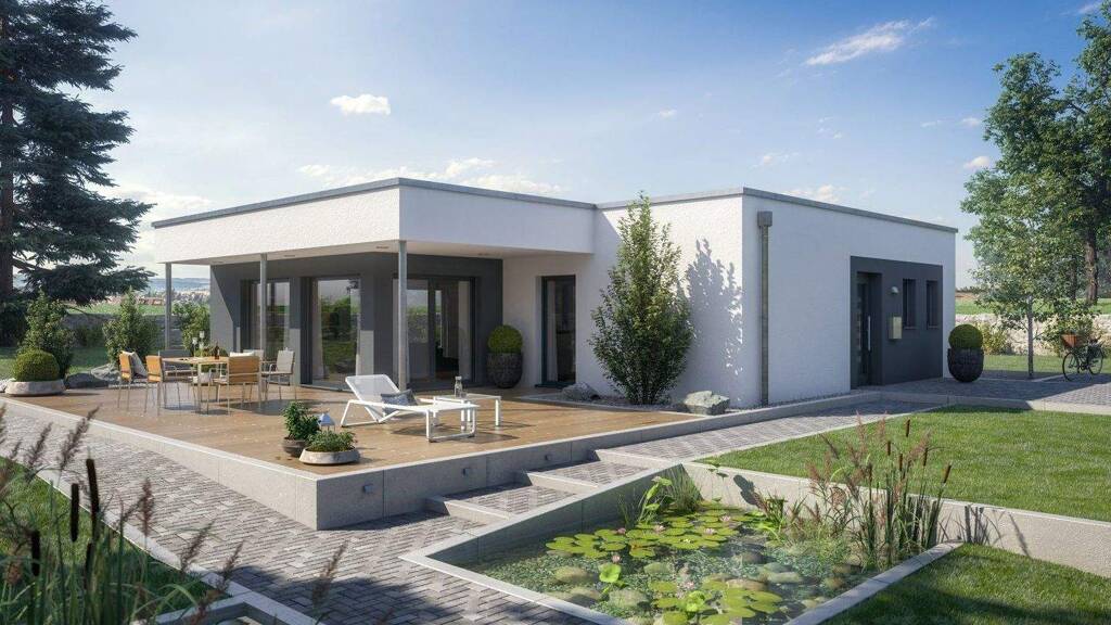 Das AMBIENCE 88 von Bien-Zenker zeigt eindrucksvoll, dass auch ein Bungalow genug Platz für die gesamte Familie bieten kann. Mit einer cleveren Raumaufteilung von 5.5 Zimmern und einer Wohnfläche von etwa 88 m² ist dieses architektonisch ansprechende Haus optimal auf die Bedürfnisse seiner Bewohner abgestimmt. Der offene Wohnbereich, der sich nach Süden hin öffnet, sorgt für eine lichtdurchflutete Atmosphäre und lädt zum Verweilen ein. Gleichzeitig sind die privaten Räume im ruhigen Norden untergebracht, was Ihnen eine erholsame Rückzugsmöglichkeit bietet. Egal, ob Sie sich für ein Sattel-, Walm- oder Flachdach entscheiden, jede Variante überzeugt durch stilvolle Architektur und durchdachten Komfort auf einer Ebene.