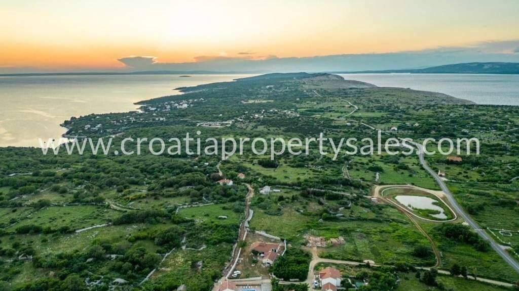 Baugrundstück von 1660 m2 auf der Westseite der Insel Pag, nahe Novalja. Es ist in zwei Parzellen unterteilt: 624 m2 zur Straße hin und 726 m2 darüber. Im Preis enthalten ist eine Baugenehmigung für die 726 m2 große Parzelle für eine Villa mit Pool und einer maximal zulässigen Bebauungsfläche von 255 m2 (GBP). Eine zweite Baugenehmigung für die 624 m2 große Parzelle kann beantragt werden. 310 m2 fallen unter die Bebauungspflicht gemäß Bebauungsplan und können daher derzeit als Hof/Garten genutzt werden. Das Grundstück ist ideal für den Bau eines Einfamilienhauses/einer Villa, da es ruhig gelegen ist und einen unverbaubaren Blick auf den Velebit-Nationalpark auf der einen und das Meer auf der anderen Seite bietet. Das Grundstück ist erschlossen und alle Versorgungsanschlüsse befinden sich in der Nähe. Das Meer ist 1 km entfernt oder in 4 Minuten mit dem Auto erreichbar. Die nächste Siedlung ist 7 km entfernt, der Flughafen Zadar 90 km.