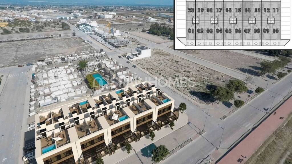 Die Reihenhäuser mit 2 und 3 Schlafzimmern in Dolores verfügen über Dachterrassen, optionale Pools und Gemeinschaftseinrichtungen.